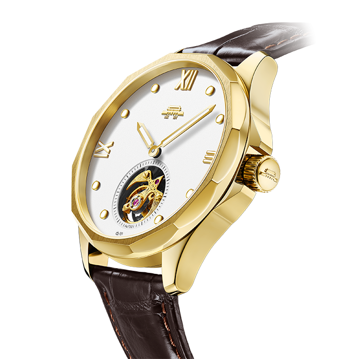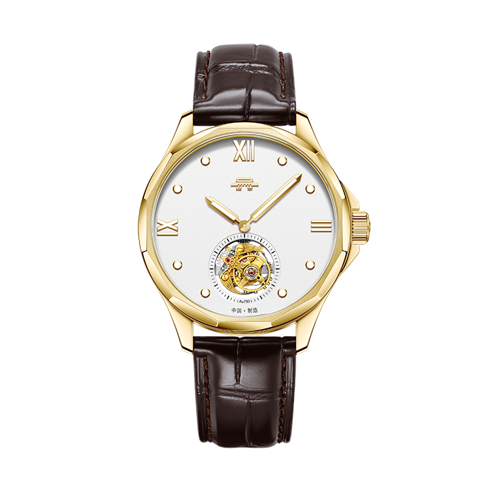 • 机心陀飞轮机心,无卡度游丝,手动上链