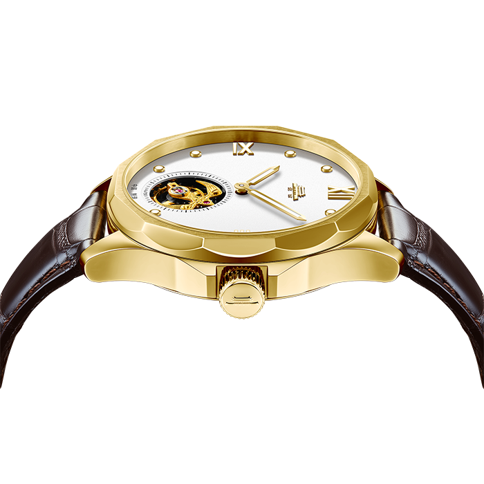 • 表壳精钢,镀IP黄金色