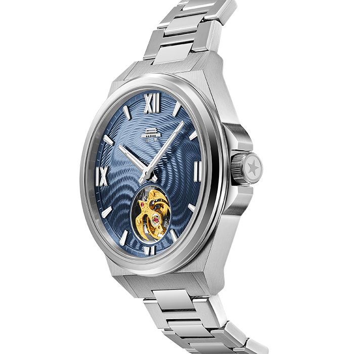 深蓝色表盘;夜光时符;不锈钢透视底盖;按制双开扣;限量68枚