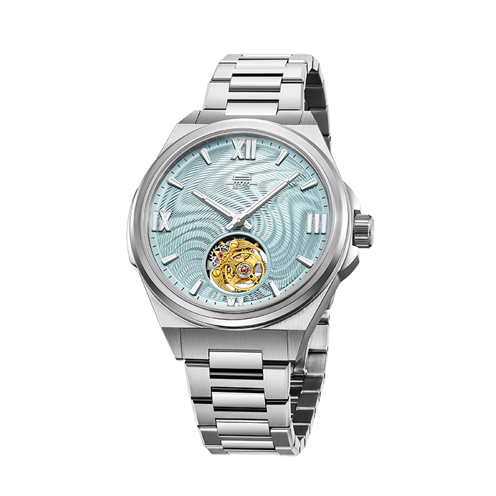 冰蓝色表盘;夜光时符;不锈钢透视底盖;按制双开扣;限量68枚’